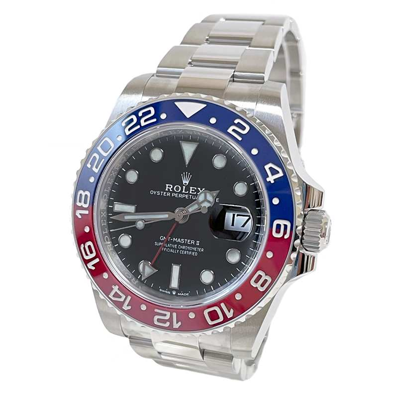The Pepsi reference 126710BLRO features the iconic red-and-blue Cerachrom bezel that directly references Rolex’s original 1950s partnership with Pan American Airways.